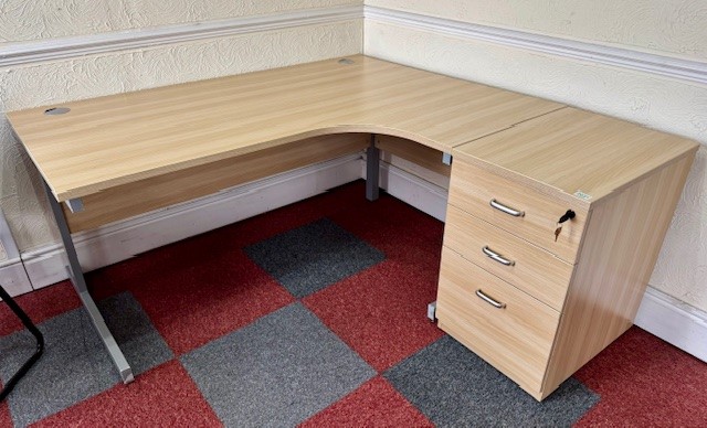 Used Right Handed Stone Oak Radial Desk With Lockable Pedestal Drawer (Item No. G2031)