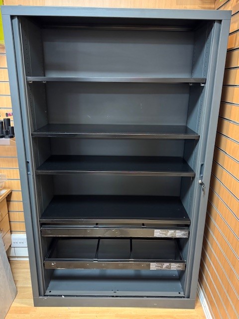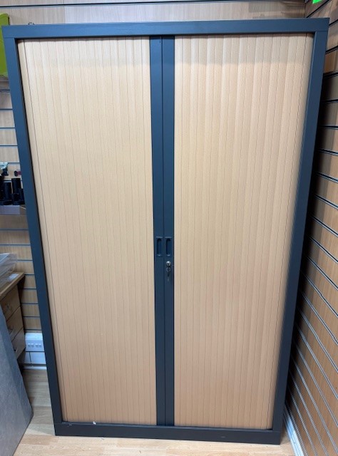 Used Lockable Tambour Cupboard with 4 Adjustable Shelves & 2 Roll Out Suspension Frames (Item No. G2050)